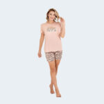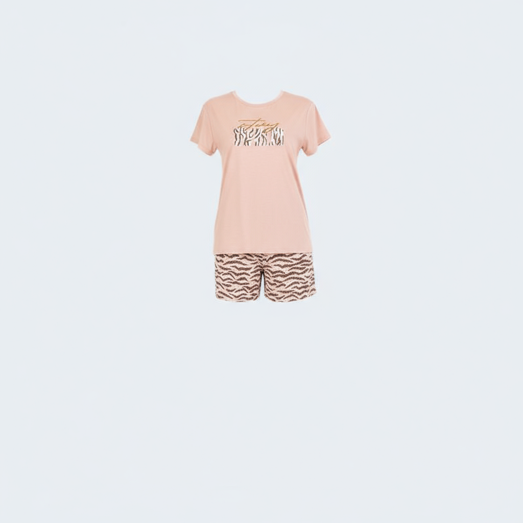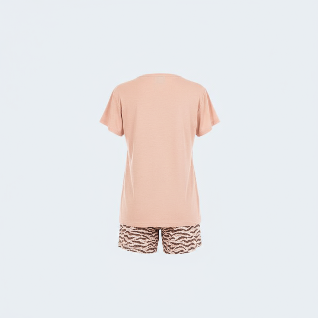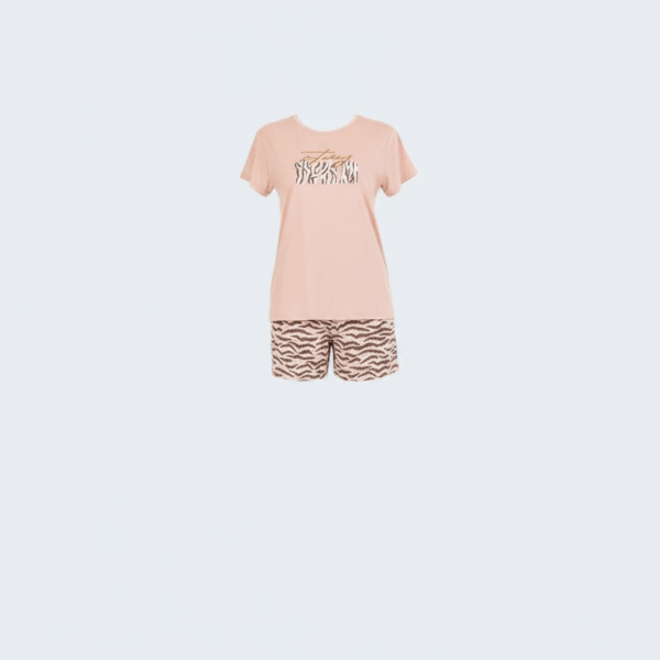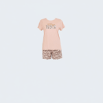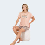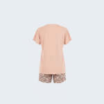 – طقم بيجاما مكون من قطعتين: شورت منقوش وبلوزة بقصة مريحة