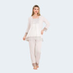 طقم بيجاما حمل فاخر من ثلاث قطع مع تفاصيل دانتيل