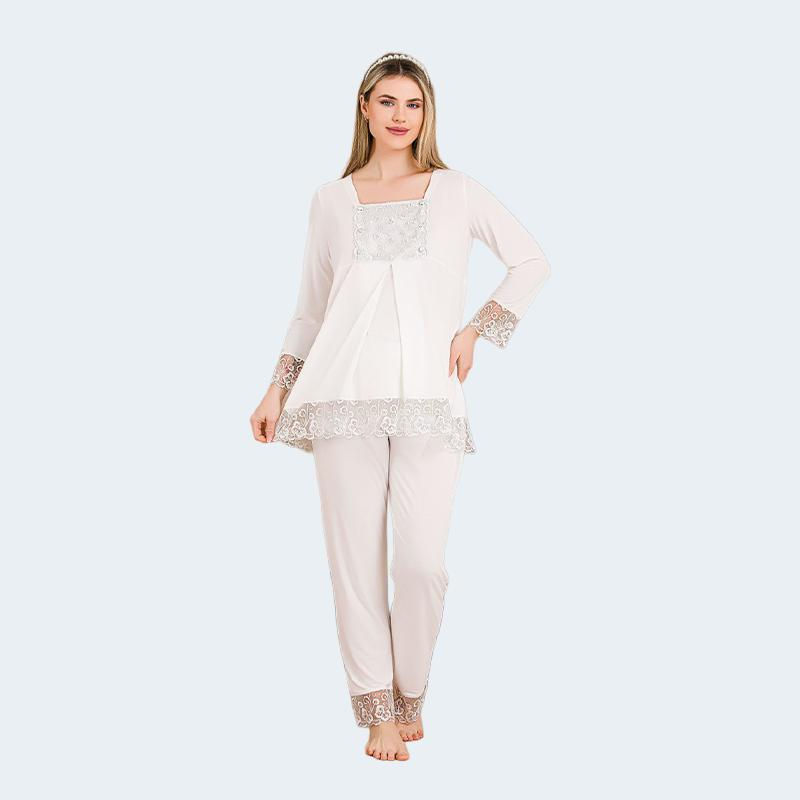 اختبري مزيجًا مثاليًا من الراحة والأناقة والأنوثة مع طقم بيجاما الحمل المكوّن من ثلاث قطع، المصنوع بحرفية عالية في تركيا. مصنوع من قماش ناعم وقابل للتنفس والتمدد، يتكيف بسهولة مع تغيرات جسمك طوال فترة الحمل وما بعدها. تتميز البلوزة ذات الأكمام الطويلة، والبنطال، والروب المتناسق بتفاصيل دانتيل ناعمة تضيف لمسة من الأناقة والرقي إلى ملابس المنزل. صمم الطقم ليوفر أقصى درجات الراحة، حيث توفر القصة المريحة والخامات القابلة للتنفس الدعم الذي تحتاجينه يوميًا، سواء كنتِ تستريحين، ترضعين، أو تستمتعين بلحظات هادئة في المنزل. احتضني الأمومة بأناقة مع هذا الطقم الفاخر والعملي.