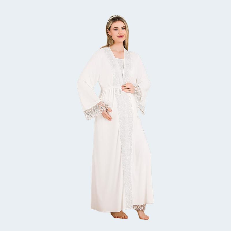 – روب متناسق مزين بحواف دانتيل أنيقة لترقية إطلالة الملابس المنزلية