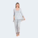 طقم بيجاما حمل فاخر من ثلاث قطع مع تفاصيل دانتيل