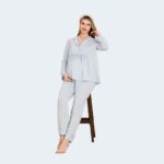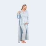 طقم بيجاما حمل مريح مكون من 3 قطع – أكمام طويلة وروب