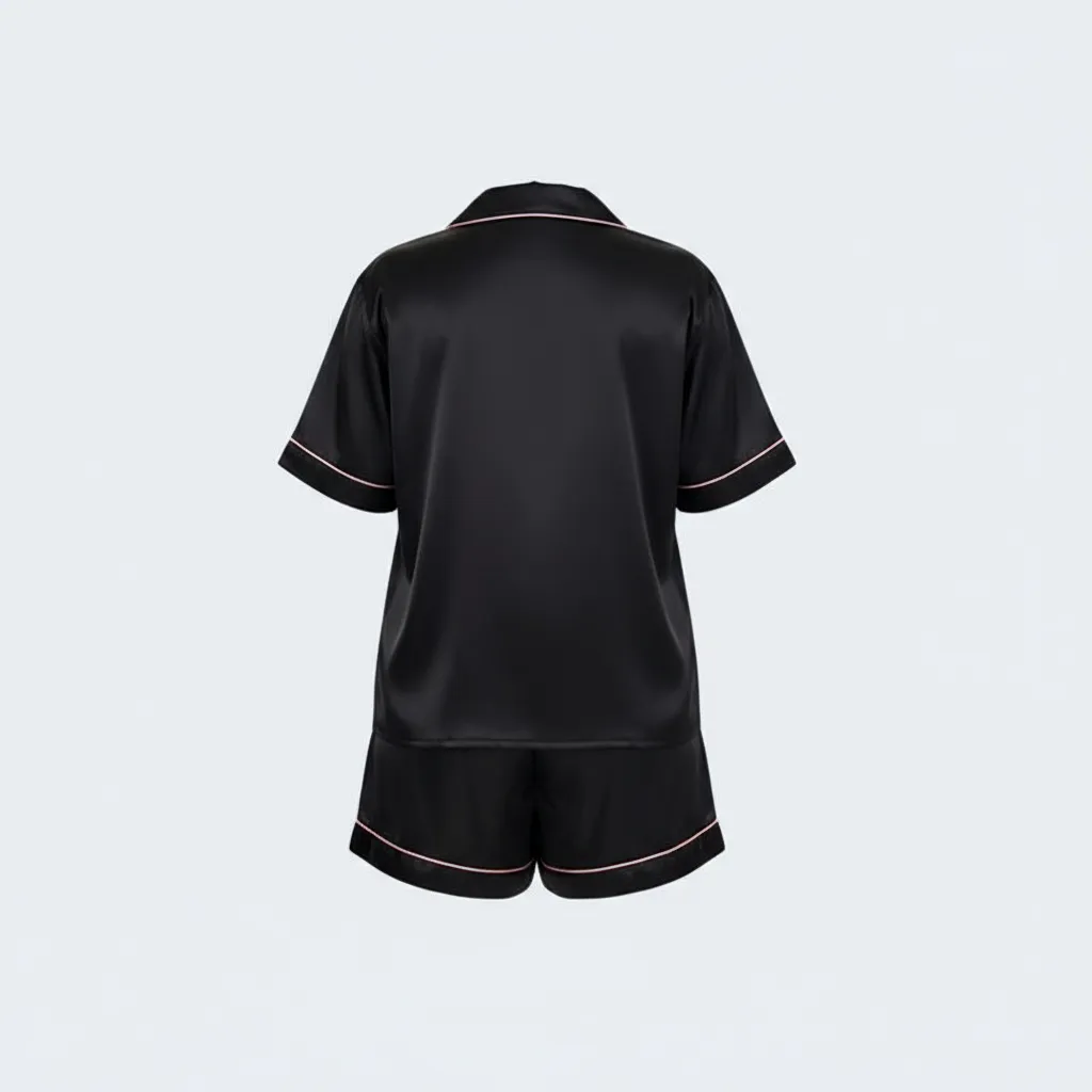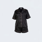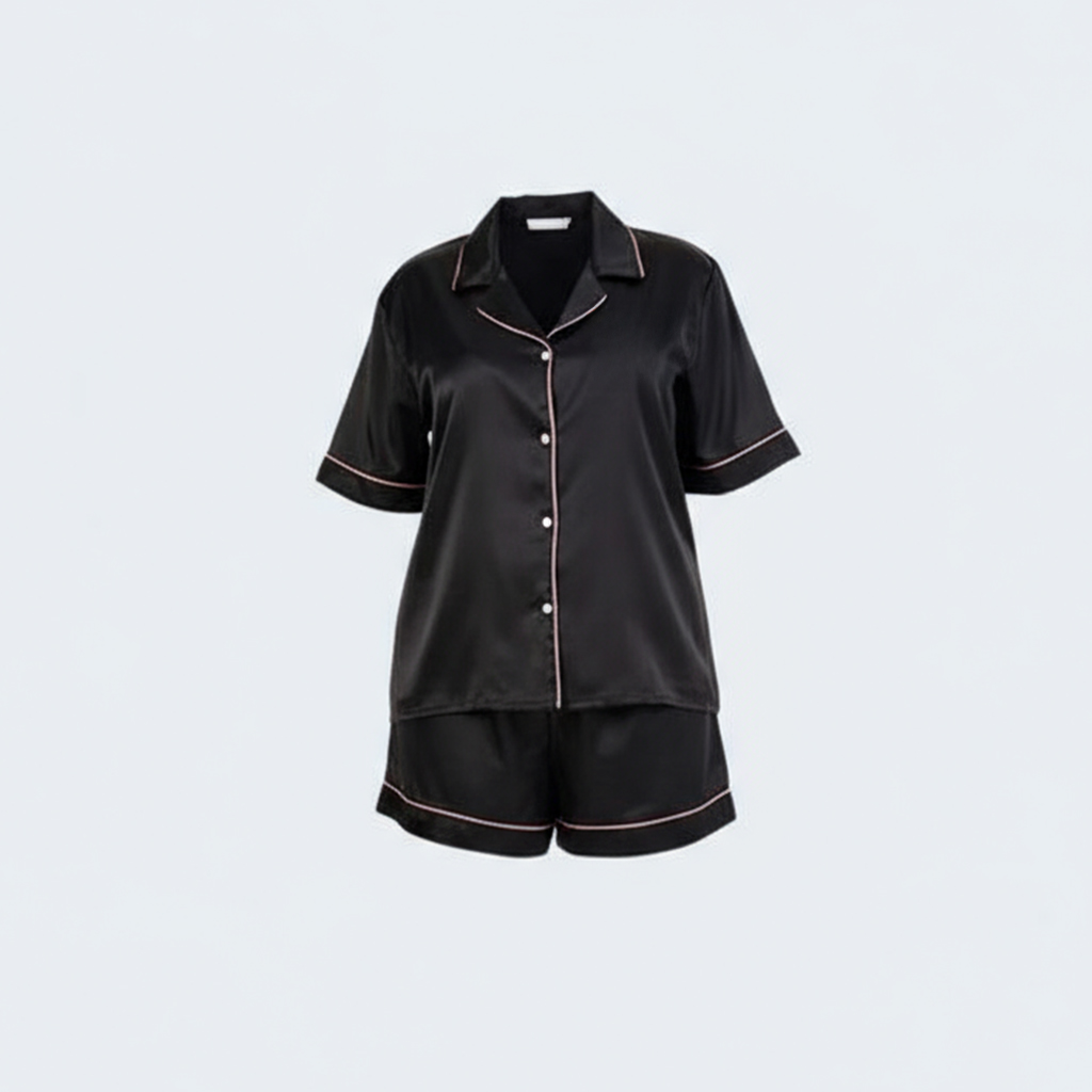 طقم بيجاما فاخر للمقاسات الكبيرة من الساتان الحريري – قطعتان (شورت وقميص بنصف كم)
