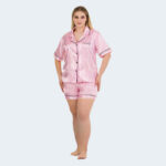 طقم بيجاما فاخر للمقاسات الكبيرة من الساتان الحريري – قطعتان (شورت وقميص بنصف كم)