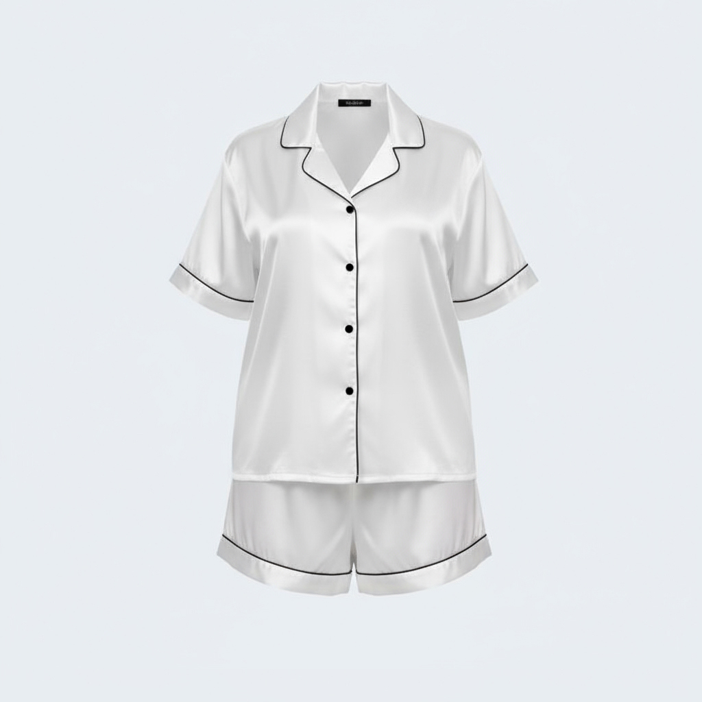 طقم بيجاما فاخر للمقاسات الكبيرة من الساتان الحريري – قطعتان (شورت وقميص بنصف كم)