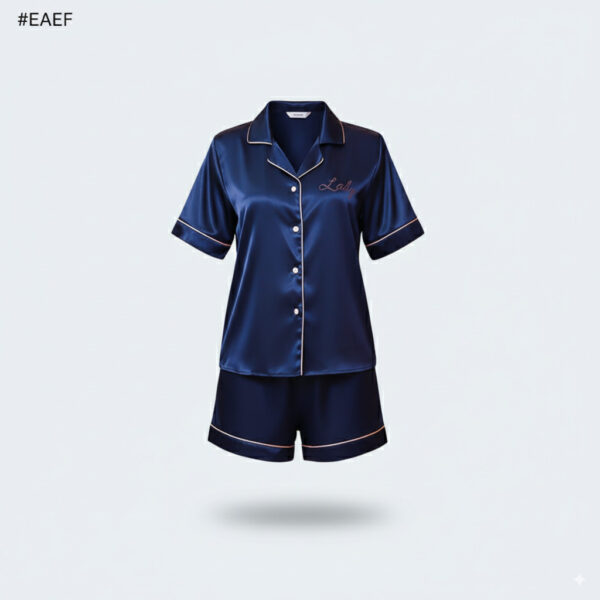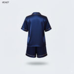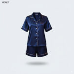 طقم بيجاما فاخر من الساتان الحريري – قطعتان (شورت وقميص بنصف كم)