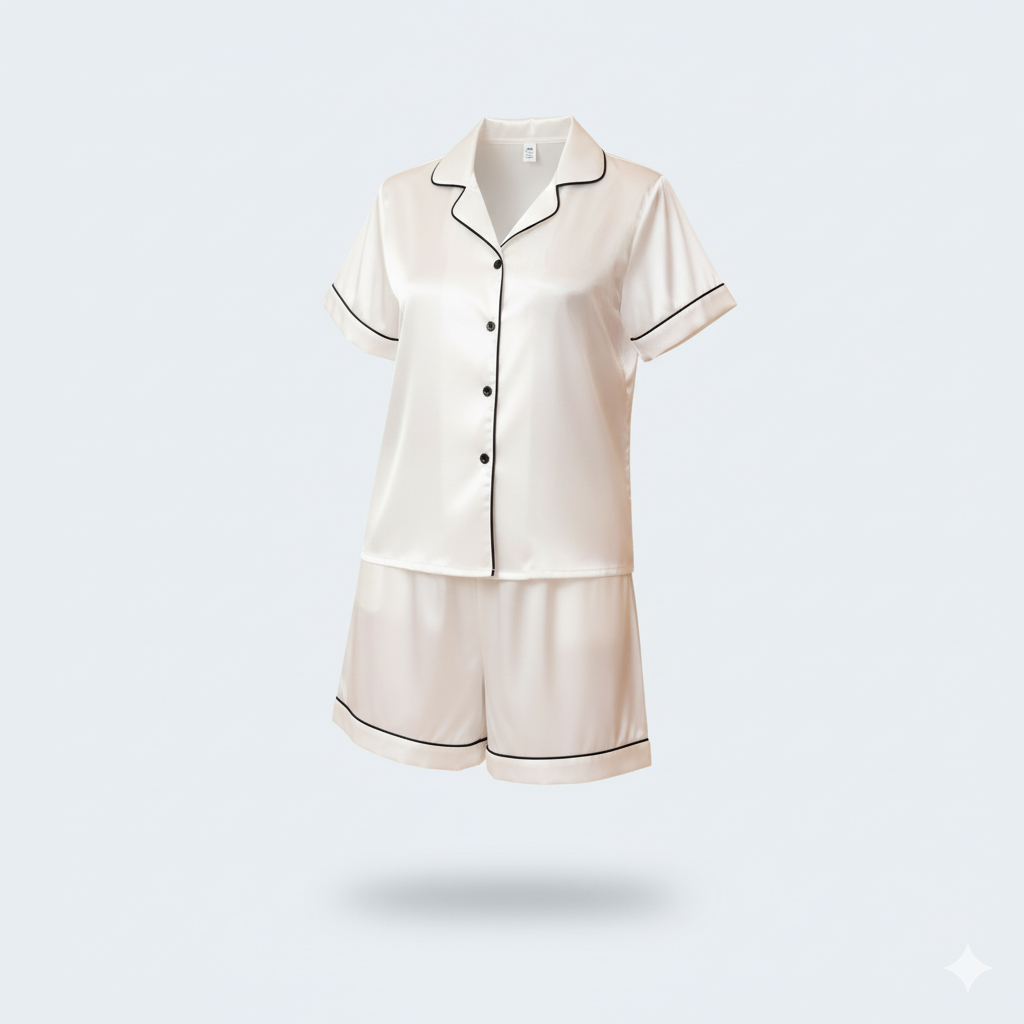طقم بيجاما فاخر من الساتان الحريري – قطعتان (شورت وقميص بنصف كم)