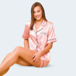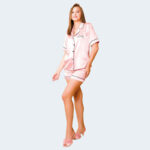 طقم بيجاما فاخر من الساتان الحريري – قطعتان (شورت وقميص بنصف كم)