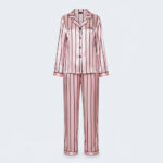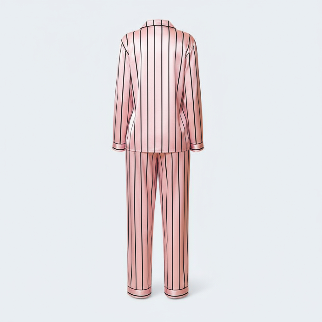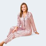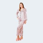 طقم بيجاما فاخر من الساتان اللامع بخطوط عريضة – قطعتان | بنطال وقميص بأكمام طويلة