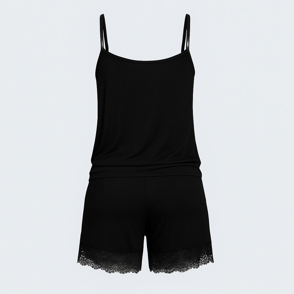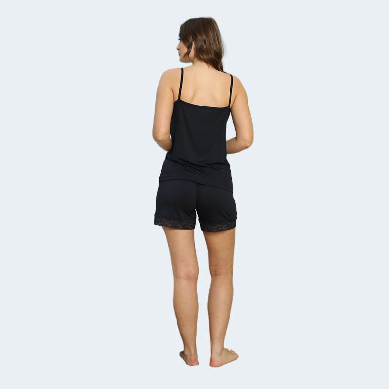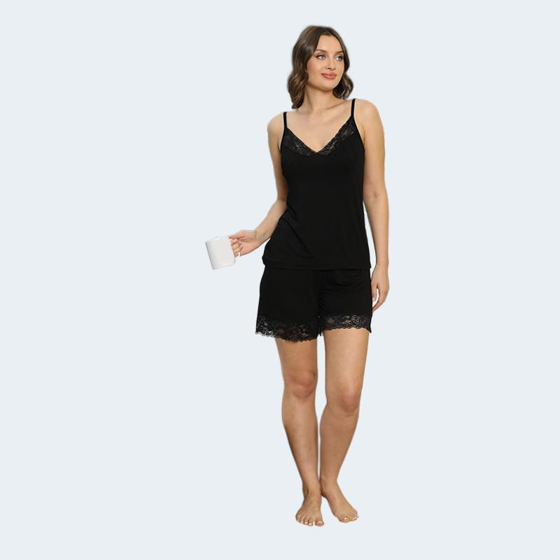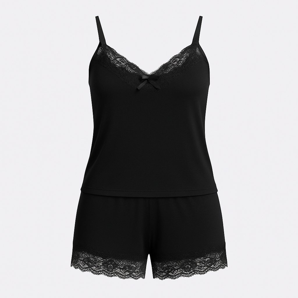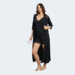 – تفاصيل دانتيل أنيقة على البلوزة والشورت والروب تضيف لمسة أنثوية رقيقة