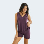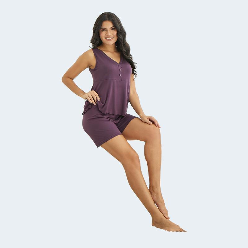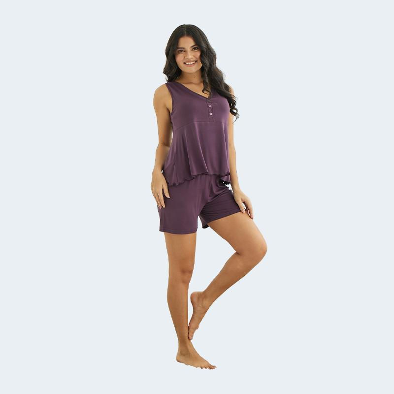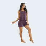 – طقم بيجاما قطعتين مكون من شورت وتوب واسع متناسق