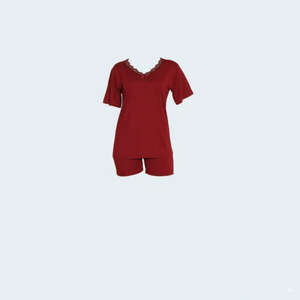 طقم بيجاما فيسكوز ناعم مكون من شورت وبلوزة مزينة بتفاصيل دانتيل ناعمة