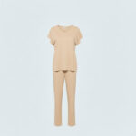 – طقم مكون من قطعتين: بنطال واسع وبلوزة بأكمام قصيرة