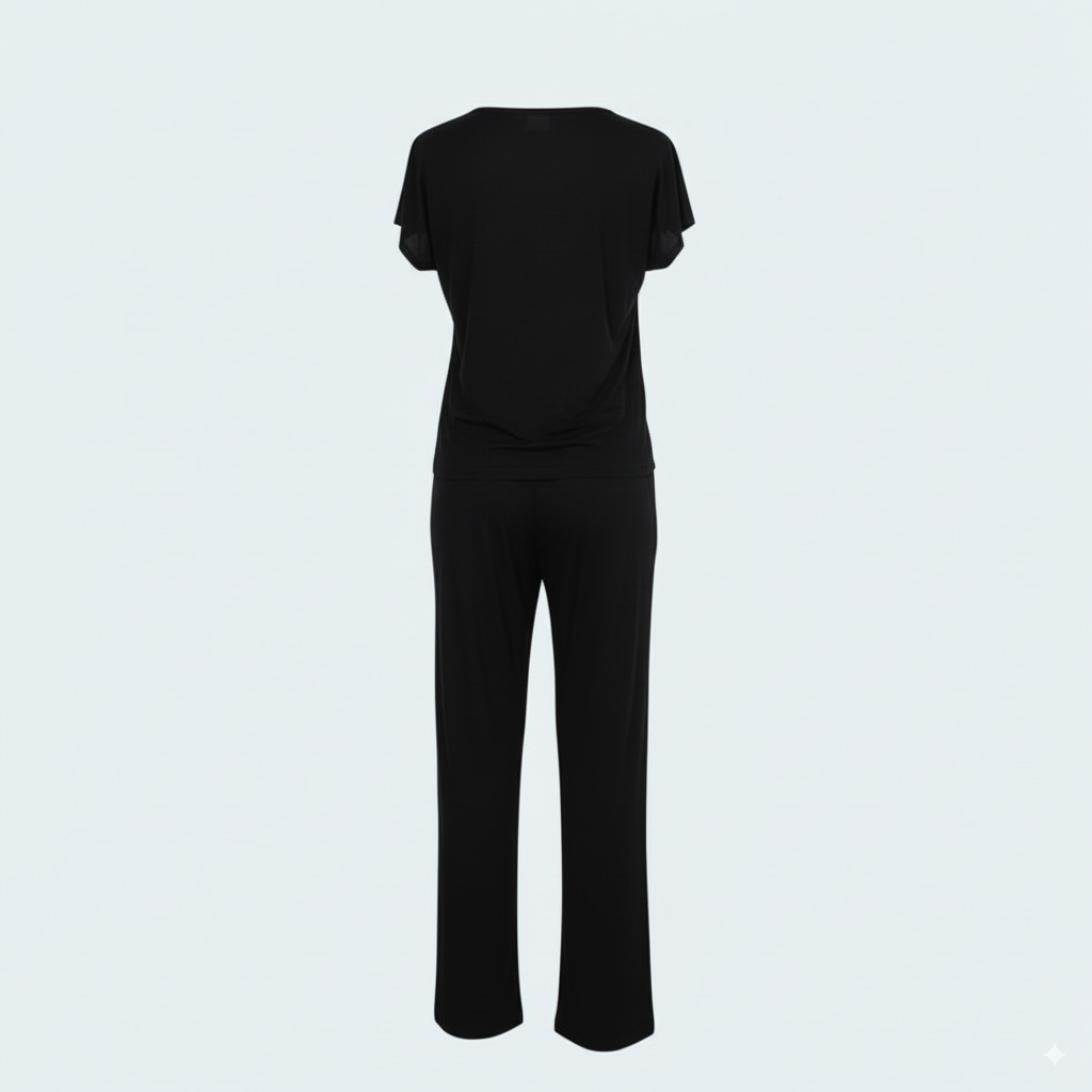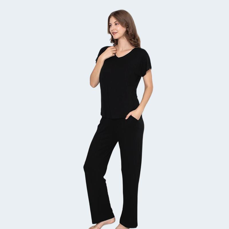طقم بيجاما فيسكوز ناعم من بنطال واسع وبلوزة بأكمام قصيرة