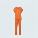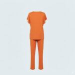 – طقم مكون من قطعتين: بنطال واسع وبلوزة بأكمام قصيرة