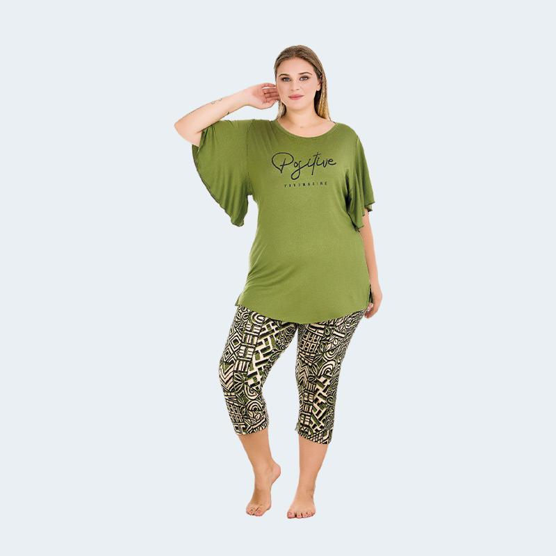 طقم بيجاما كابري مع تصميم فريد بأكمام واسعة للمقاسات الكبيرة