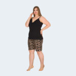 طقم بيجاما للمقاسات الكبيرة من شورت بنقشة النمر مع قميص أسود بتفاصيل دانتيل ناعمة