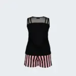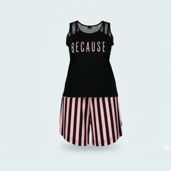 – طقم بيجاما مكون من قطعتين للمقاسات الكبيرة: شورت مخطط وتوب أنيق