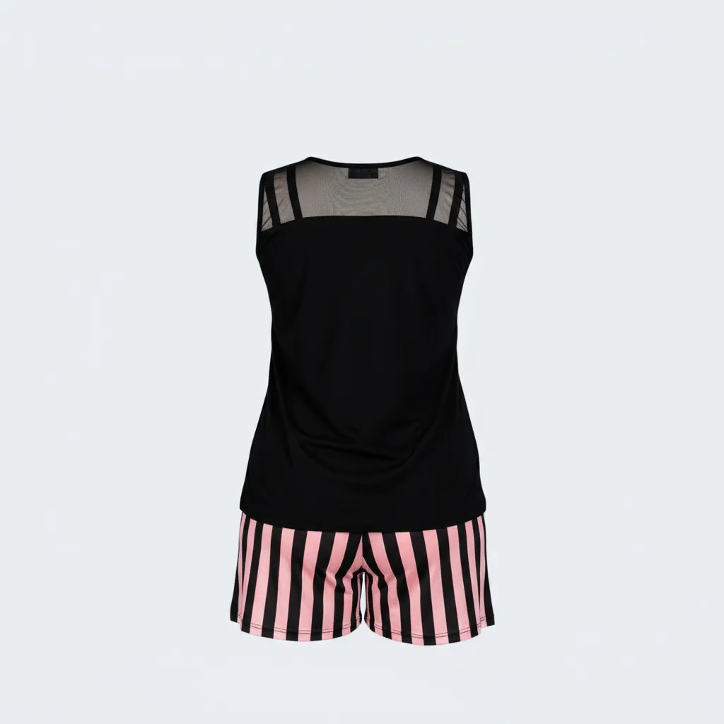 طقم بيجاما للمقاسات الكبيرة من شورت مخطط مع توب بتفاصيل شفافة