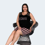 ارتقي بإطلالتك المنزلية مع هذا الطقم الأنيق من بيجاما للمقاسات الكبيرة، الذي يضم شورت مخطط ناعم وقابل للتنفس مع توب متناسق مزين بتفاصيل شفافة أنيقة. مصنوع بإتقان في تركيا، هذا الطقم المكون من قطعتين مصمم ليمنحك أقصى درجات الراحة والملاءمة، مما يجعله الخيار الأمثل للّيل في الأجواء الدافئة أو أيام الاسترخاء في المنزل.