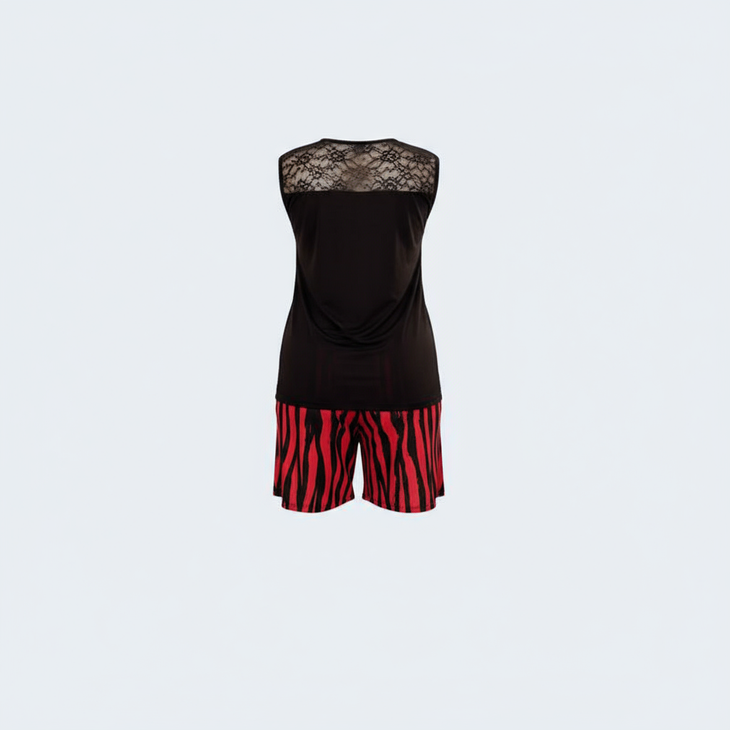طقم بيجاما للمقاسات الكبيرة من شورت مع توب بتفاصيل شفافة