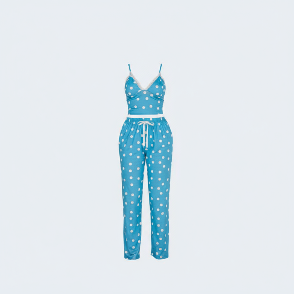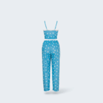 – طقم بيجاما أنيق مكون من قطعتين: بنطال واسع وتوب قصير