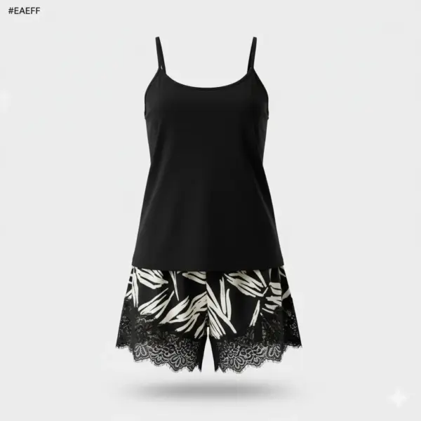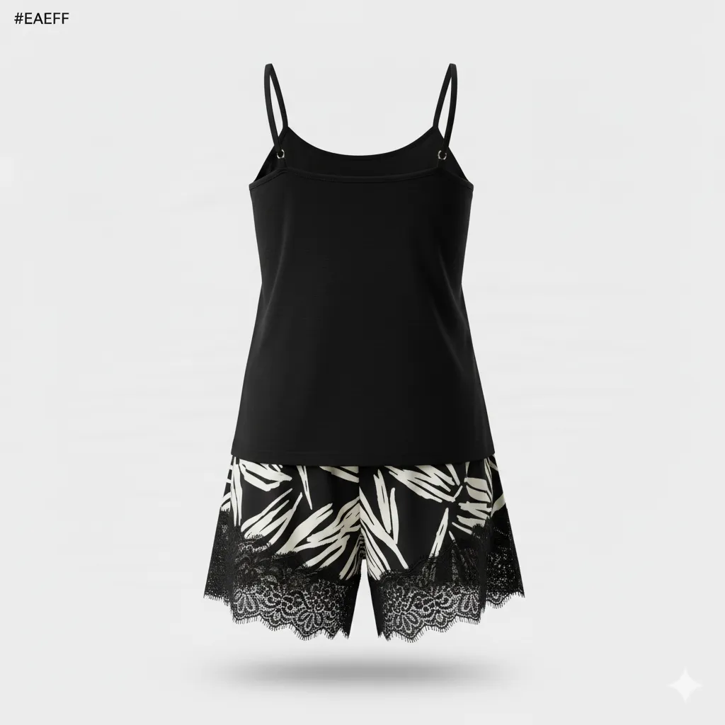 طقم بيجاما ناعم للمقاسات الكبيرة بشورت مع بلوزة بحمّالات رفيعة وتفاصيل دانتيل أنيقة