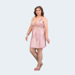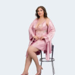 طقم لانجري فاخر للمقاسات الكبيرة – قميص نوم بدانتيل ناعم مع روب ساتان حريري