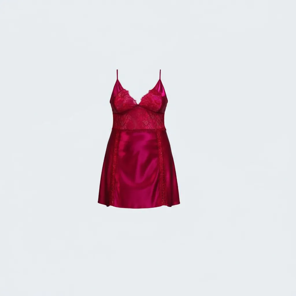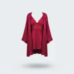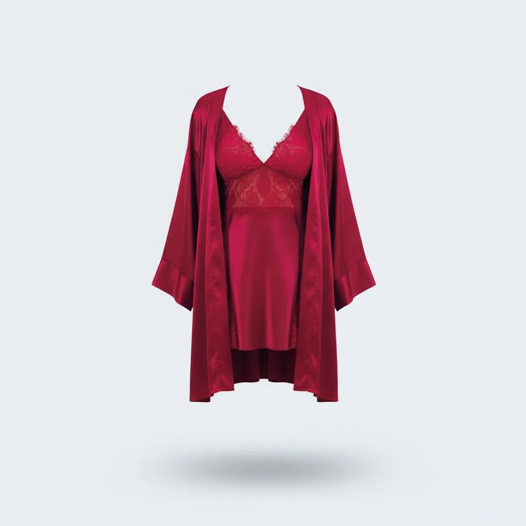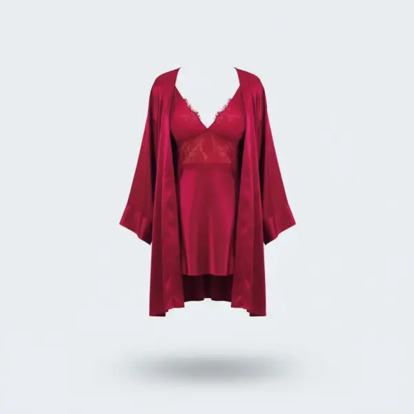 – طقم لانجري فاخر مكون من قطعتين: قميص نوم بدانتيل ناعم وروب ساتان حريري