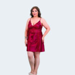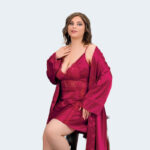 طقم لانجري فاخر للمقاسات الكبيرة – قميص نوم بدانتيل ناعم مع روب ساتان حريري