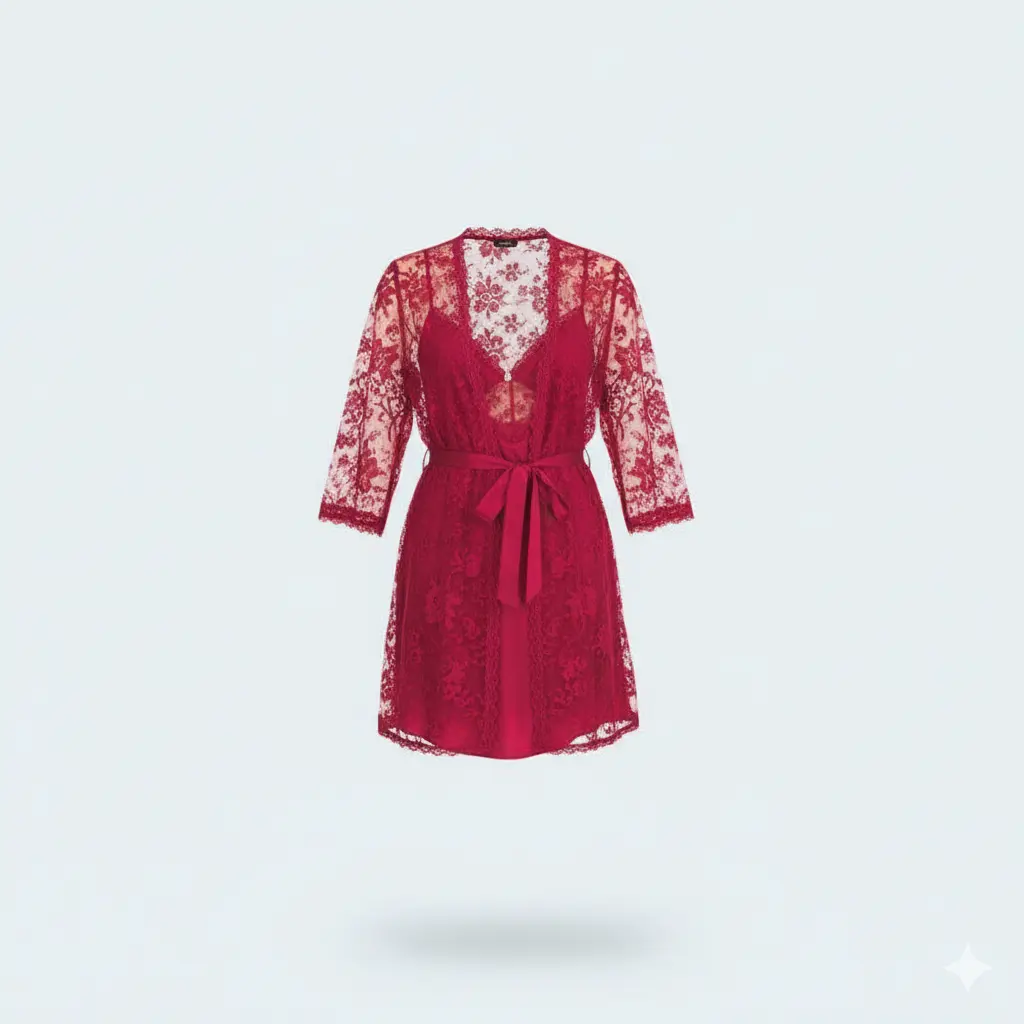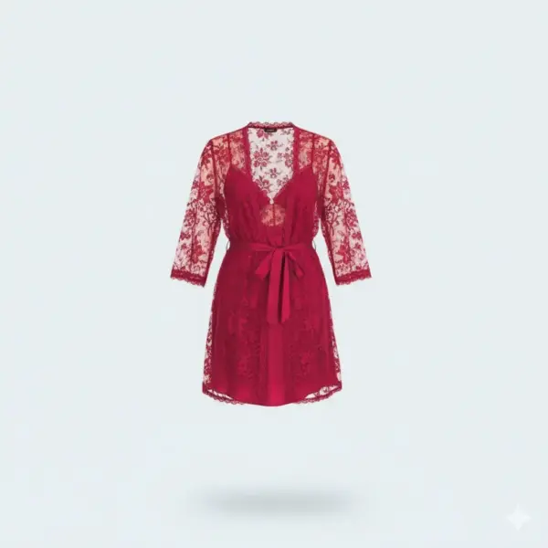 طقم نوم فاخر – قميص نوم بدانتيل ناعم مع روب دانتيل أنيق