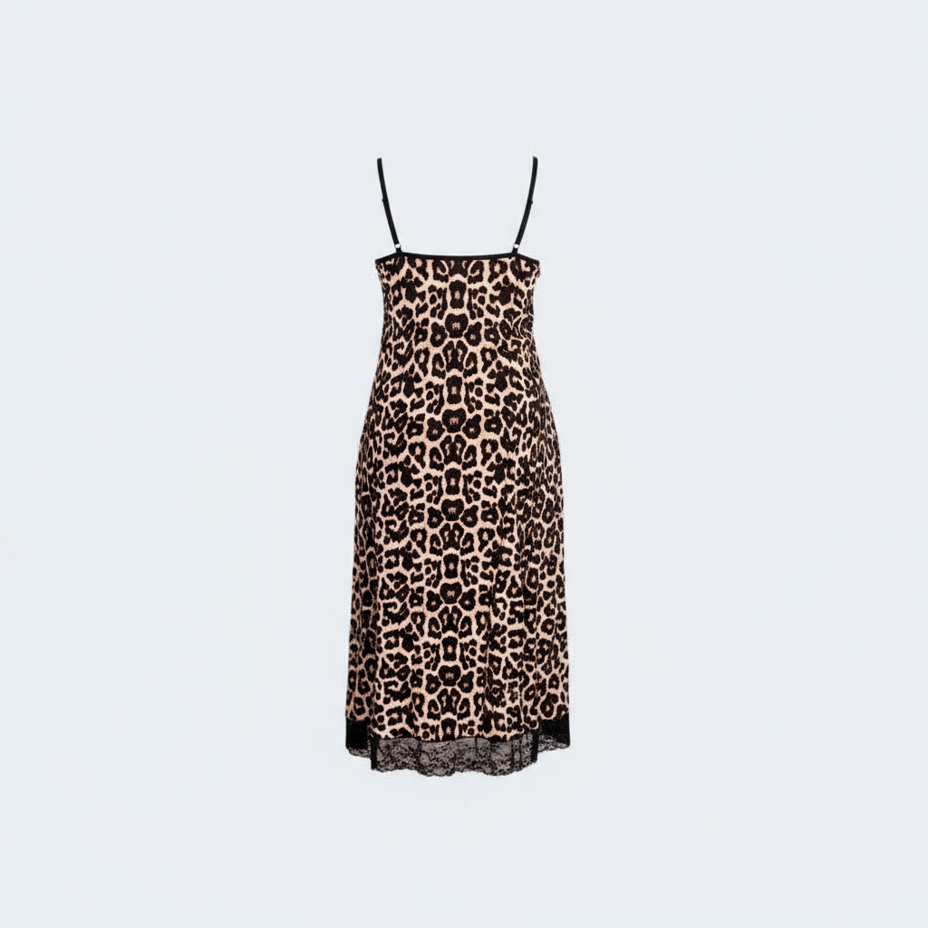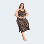 فستان منزلي بنقشة النمر للمقاسات الكبيرة مع تفاصيل دانتيل ناعمة