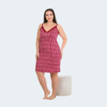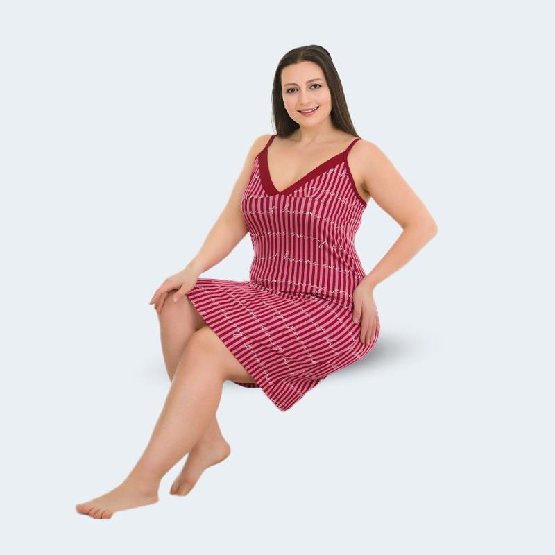 فستان منزلي قصير أحمر مخطط للمقاسات الكبيرة