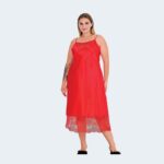 قميص نوم طويل وروب ن الساتان الحريري مع تفاصيل دانتيل عريضة ناعمة – للمقاسات الكبيرة