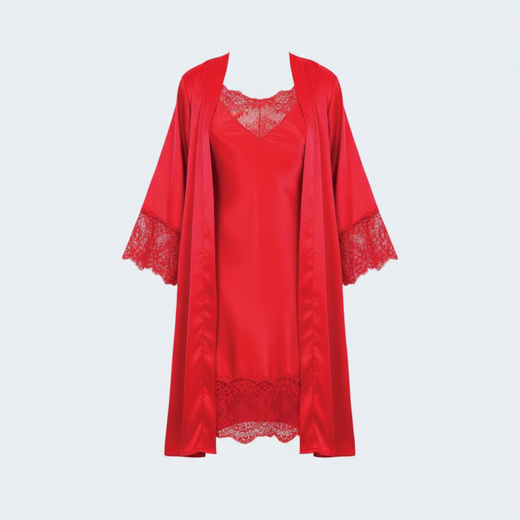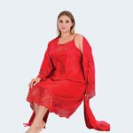 طقم لانجري فاخر للمقاسات الكبيرة – قميص نوم بدانتيل ناعم مع روب ساتان حريري