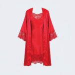 – طقم من قطعتين: قميص نوم طويل مع روب متناسق