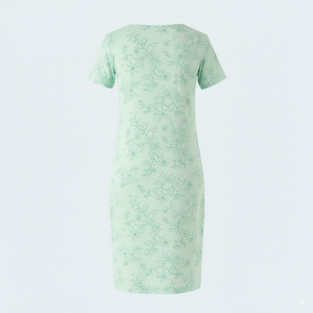 دللي نفسكِ بالراحة المطلقة والأناقة البسيطة مع هذا الفستان المنزلي بأكمام قصيرة المصنوع من الفيسكوز، والمثالي للنوم أو الاسترخاء بأناقة في المنزل. مصنوع في تركيا من مزيج ناعم وقابل للتنفس بنسبة 95% فيسكوز و5% ليكرا، ينسدل بنعومة على الجسم ويمنحكِ إحساسًا مريحًا. يتميز التصميم بتفاصيل دانتيل ناعمة على فتحة الرقبة تضيف لمسة أنثوية راقية. سواء كنتِ تسترخين في المنزل أو تستعدين للنوم، فهذا الفستان الخفيف سيكون خياركِ المثالي للراحة والأناقة اليومية.