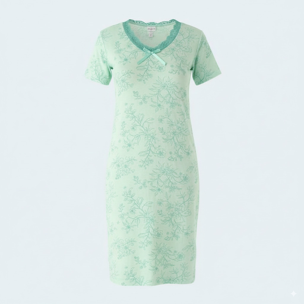 قميص نوم فيسكوز ناعم بأكمام قصيرة وتفاصيل دانتيل رقيقة على الصدر