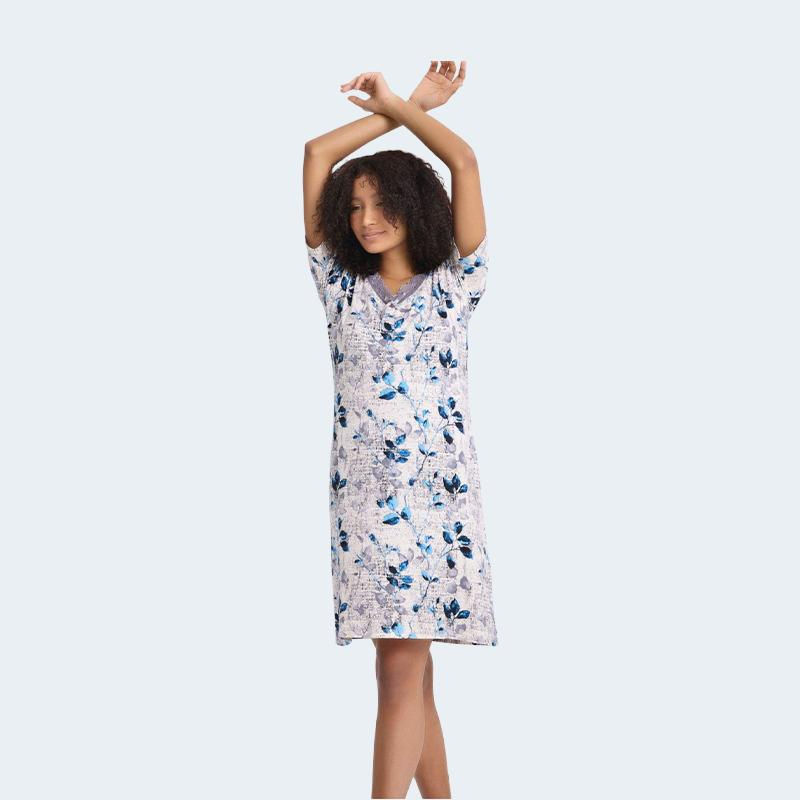 قميص نوم فيسكوز ناعم بأكمام قصيرة وتفاصيل دانتيل رقيقة على الصدر