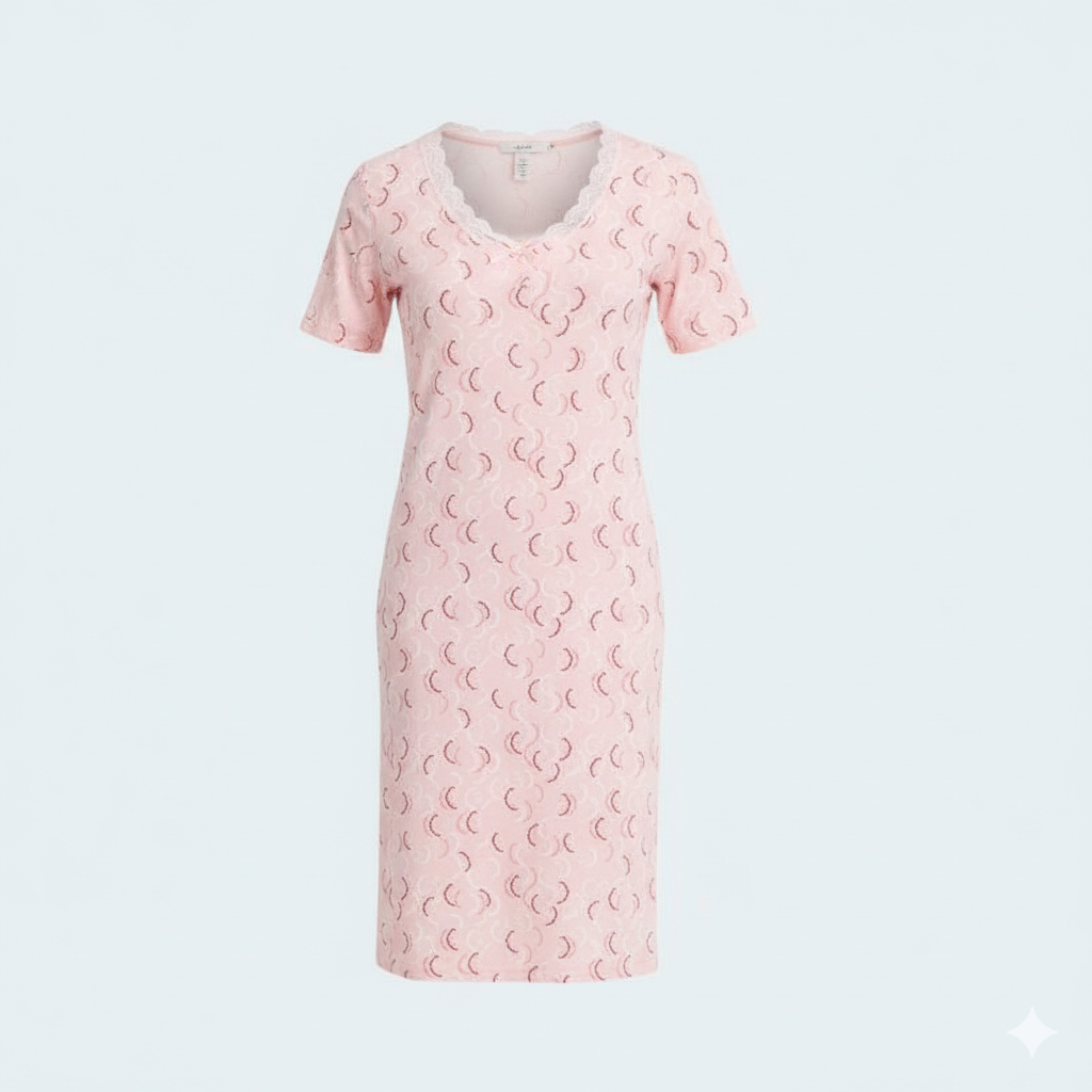 قميص نوم فيسكوز ناعم بأكمام قصيرة وتفاصيل دانتيل رقيقة على الصدر