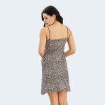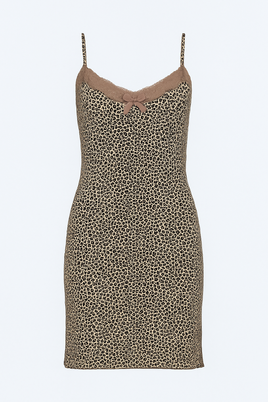 قميص نوم فيسكوز ناعم بحمالات رفيعة ودانتيل على الصدر وفتحة جانبية