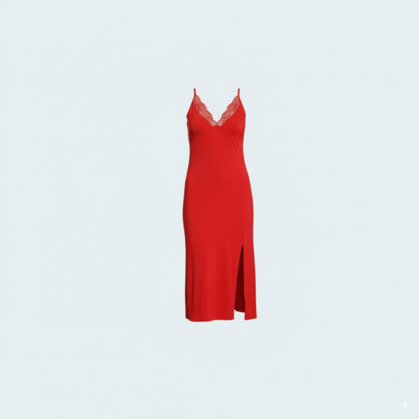 قميص نوم فيسكوز ناعم بفتحة جانبية وتفاصيل دانتيل رقيقة على الصدر