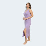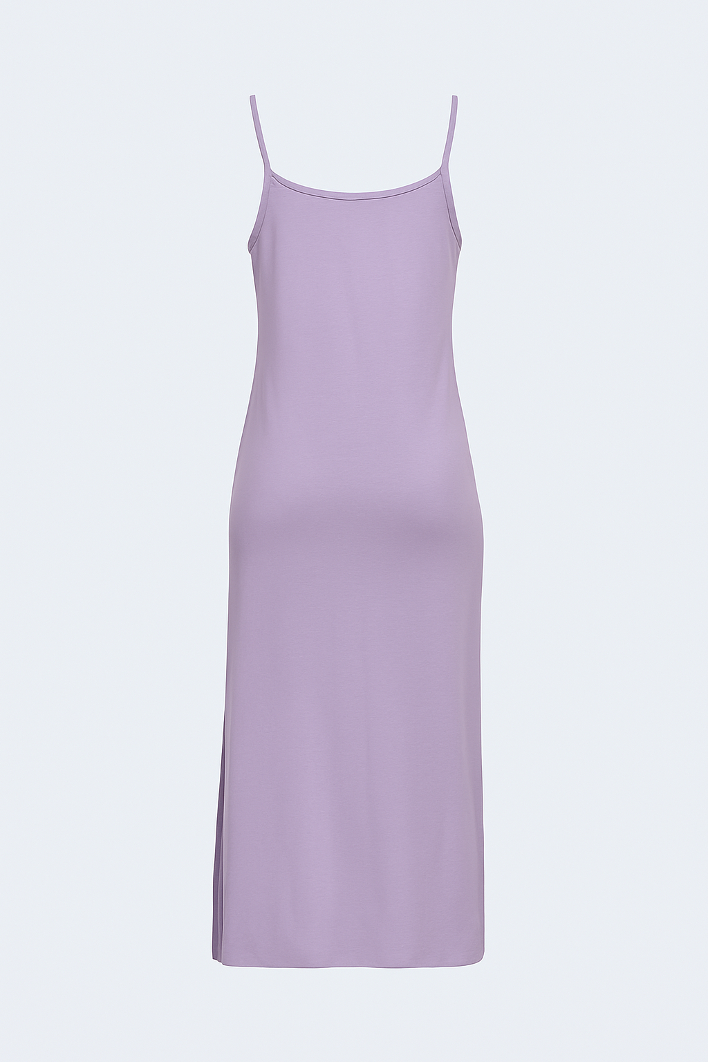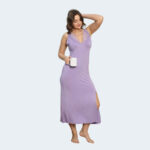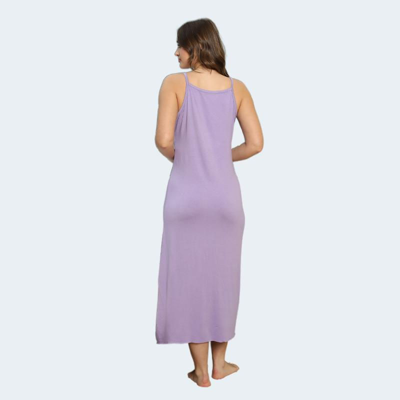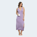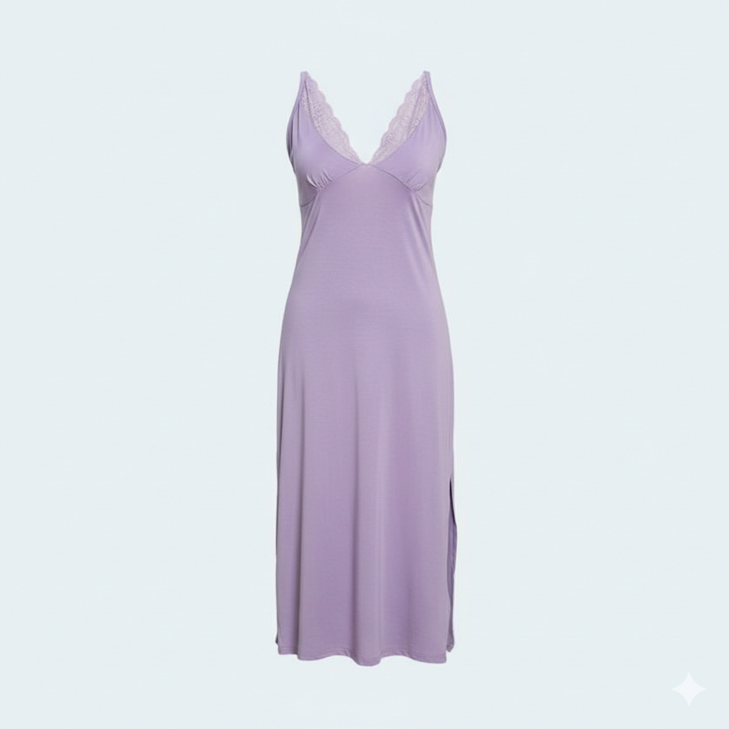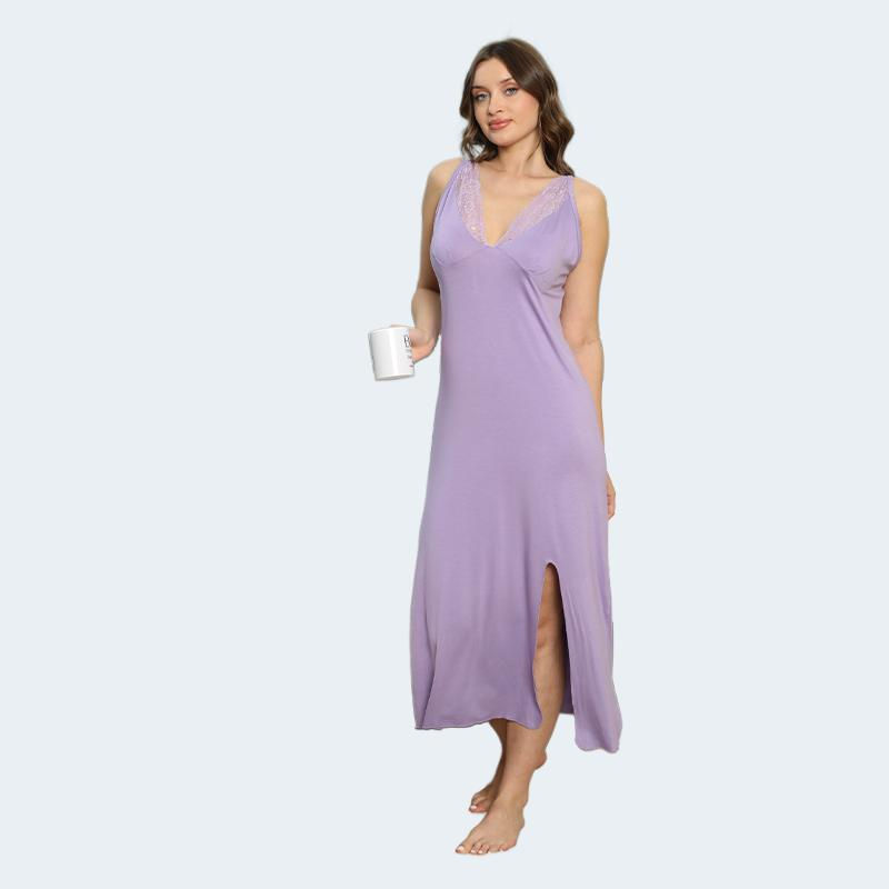 قميص نوم فيسكوز ناعم بفتحة جانبية وتفاصيل دانتيل رقيقة على الصدر