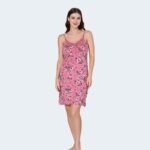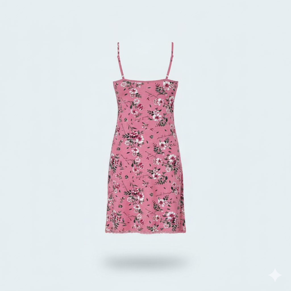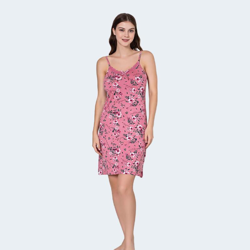قميص نوم فيسكوز ناعم بحمالات رفيعة ودانتيل على الصدر وفتحة جانبية