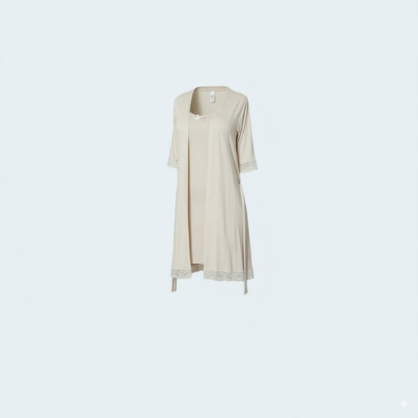 – روب متناسق بتفاصيل دانتيل رقيقة لإطلالة أنيقة