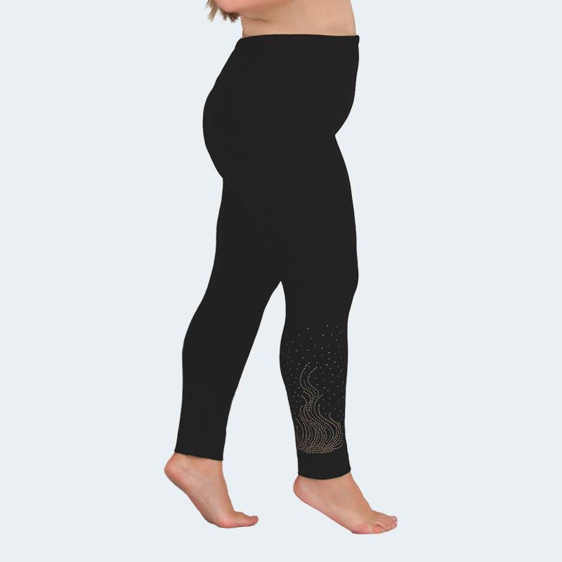 ليقنز أسود أنيق بخصر عالٍ وطول كامل مع لمسة كريستالية – مقاس كبير